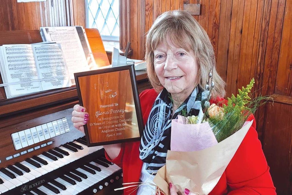 On Easter Sunday, 2021, Gloria Penney, the organist at St. Aidan’s Church in Port Blandford, was recognized for 55 years of dedicated service! Her service