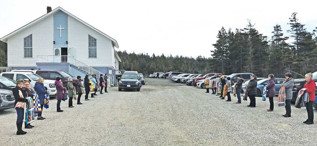 April 5, 2021: 22 ladies of the Parish of Bonne Bay North Prayer Quilt Group formed an honour guard at the funeral procession of one