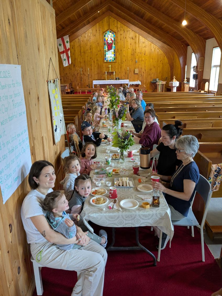 The next Sunday, we brought our families to church to celebrate and give thanks for all the fun we had learning about God’s World of Wonder and how we are called to care for it and for one another. We played our rhythm instruments and sang our special songs: “Praise Him, Praise Him,” “Who Put the Colours in the Rainbow,” and “God Made the Chickens and the Cows and the Bees.” And we made the promises from our letter to the earth into our Intercessions that day, to ask God to help us keep them.