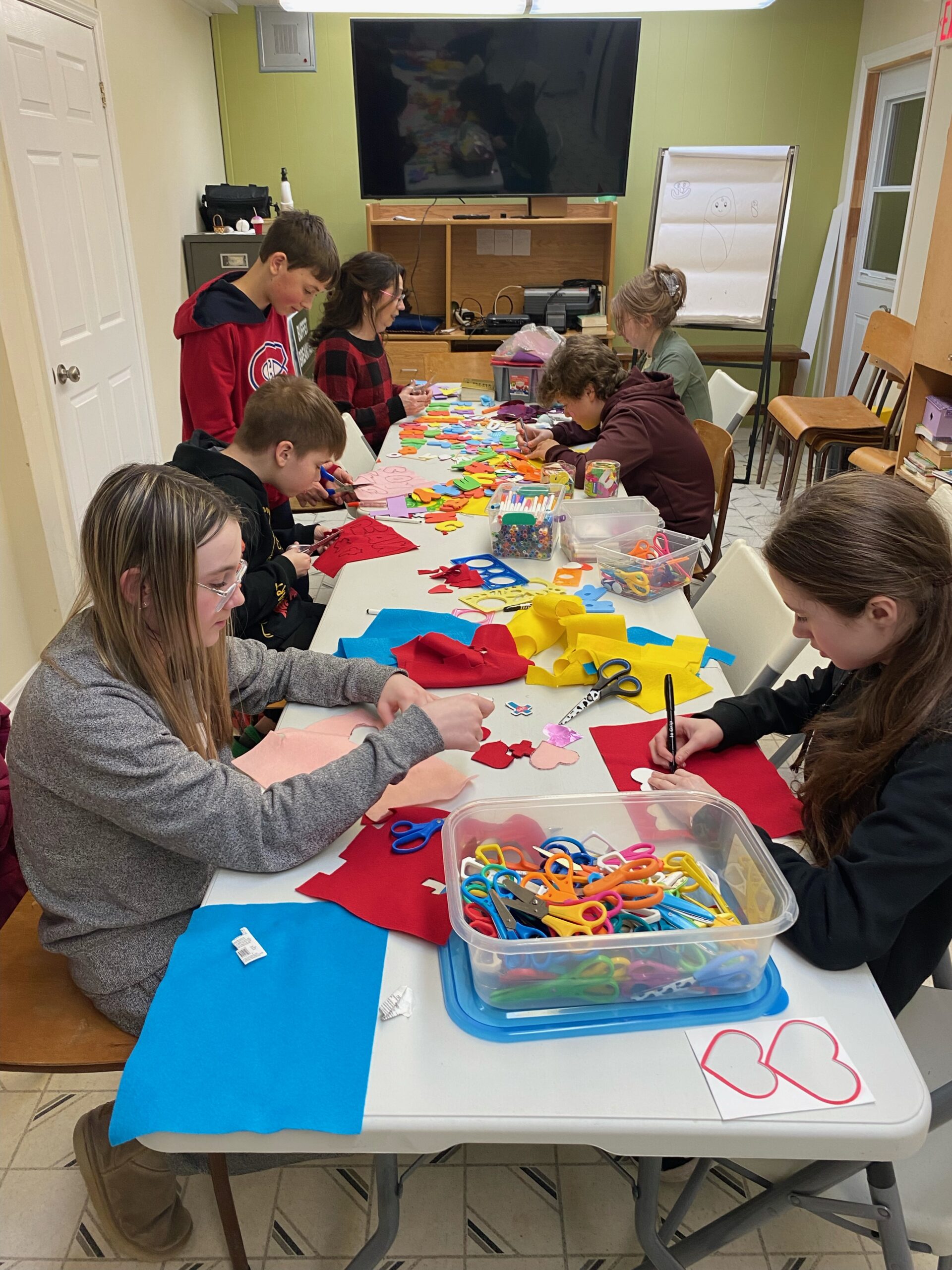 Many people in the Parish of Bay Roberts/Coley’s Point know somebody who has been diagnosed with Alzheimer’s or dementia. Our parish’s Busy Hands Crafters group was wondering what we could do to help, so we decided to make fidget mats. At a youth group night, the young people cut out letters that could be sewn onto the mats. Some ladies assembled base mats and constructed ‘fidget’ attachments at home, and many participants donated fabrics and items that would enable us to assemble a larger quantity than we had originally thought was possible.