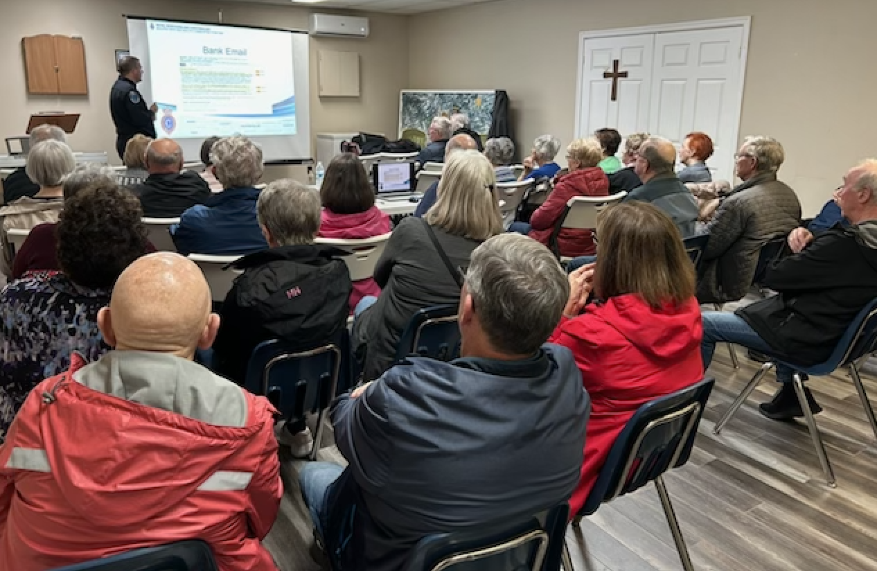 It was a very informative evening as Constable Fitzgerald presented a seminar on fraudulent activity, and how seniors are often the victims. Almost a full house of seniors from the congregation and community listened attentively, and were very inquisitive as well on the topic. Great fellowship followed with tea, coffee, and finger food. Always be vigilant with respect to scammers.