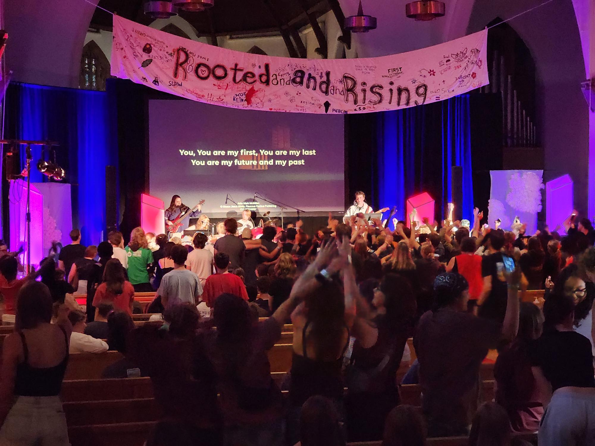 Over 300 youth attended CLAY 2025, arriving in Saskatoon from one end of Canada to the other. It was a gathering filled with music, fun, learning, and new friendships. Perhaps the highlight of the event was former Moderator of the United Church of Canada, Jordan Cantwell, who spoke several times during the large group meetings. Her reflections on her formation to ministry really expressed the theme of the event, “Rooted and Rising.” She encouraged the young people to continue to grow in their relationship and service to God, noting that there is a place for each and every one of them. One of the most important lessons expressed during CLAY was that the young people were not simply the future of the Church, but its present: having a role to play right now in faith and service, and with things to teach and to learn.