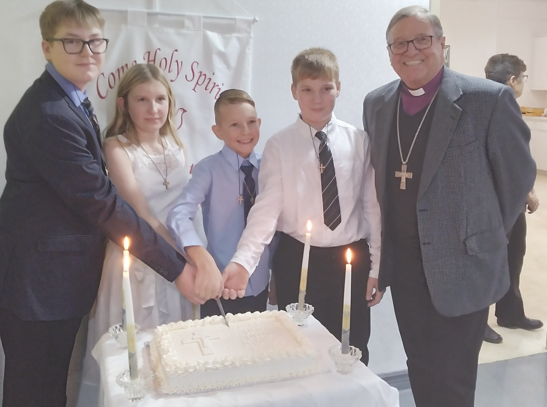 St. Lawrence Parish, Portugal Cove, held Confirmation on December 10th, 2023. Four boys and one girl were confirmed by Bishop Sam Rose. Along with Confirmation Classes on Sunday mornings, they also met on Friday evenings to complete a Youth Alpha Course.